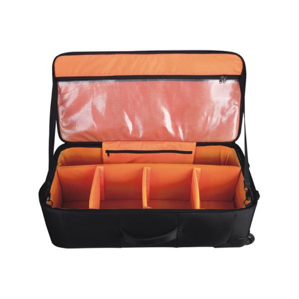 Oscar Lighting System Bag is ideal to carry delicate portable lighting gear and keep it organised and safe on location. Compact and padded, With water-proof wearable 1680D nylon material. The dividers can be easily removed to create a single large storage compartment. The easy-view orange interior is fully padded to cushion contents. Ergonomic carrying handles and with two directions, easy to carry. Built-in wheeled design makes your travelling relaxed and easy to go anywhere.