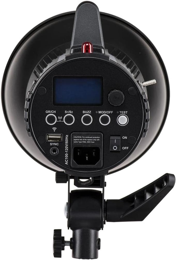 GS300II 300Ws Monolight from Godox is a versatile flash head with solid core and convenience features. The strobe has power that's variable from 1/32 to 1/1 and recycling times from 0.3 - 1.5 sec. The 150W modeling light can be set to Proportional to mimic the effects of the flash's power setting for pre-visualizing your photo, or it can be adjusted from 5 - 100% output. Both the power and the modeling light can be adjusted remotely with the separate purchase of a transmitter, since the head has a built-in 2.4 GHz wireless receiver. The optional XT16 or FT-16 transmitter will give you wireless triggering of the flash head. Settings are visible on the flash head's digital readout. The GS300II has a Bowens front accessory mount that allows it to use not only Godox modifiers, but also accessories from the many manufacturers that use this popular mount.
