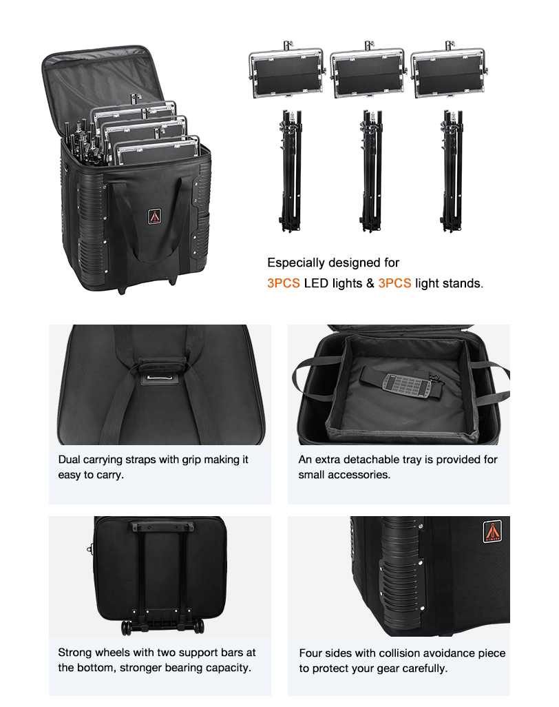 E-Image Oscar L80 Wheeled Rolling Trolley Bag for 3PCS Lights with Stands