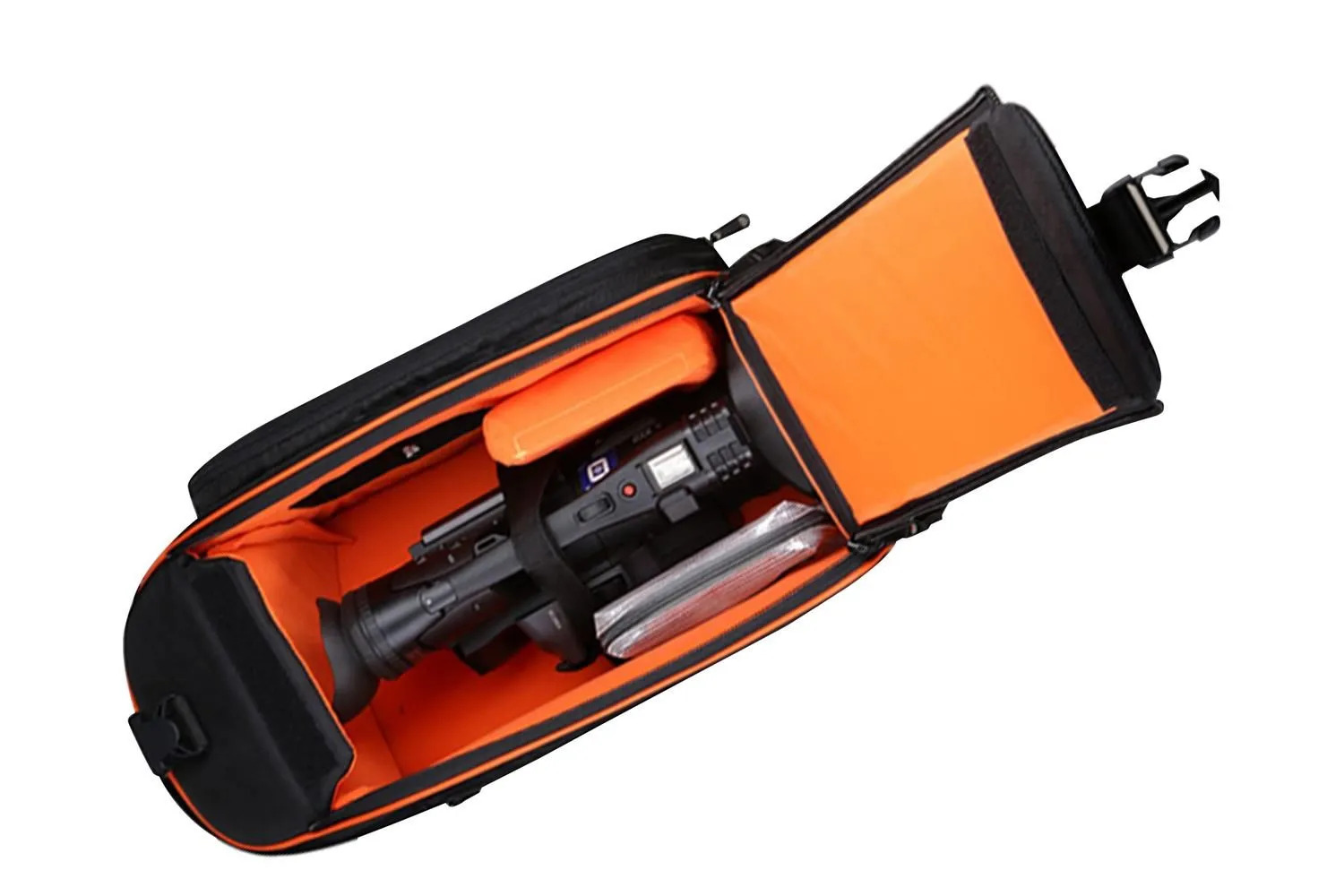 The bottom of the bag is designed to fit onto a trolley for convenient transportation. There are also side pockets for storing smaller accessories. The bag is designed with comfort in mind, featuring an ergonomic carrying handle and a padded shoulder strap. The twin zipper top allows for quick and easy access to your equipment, making the Oscar series shoulder bags a practical and versatile choice for any photographer or videographer.