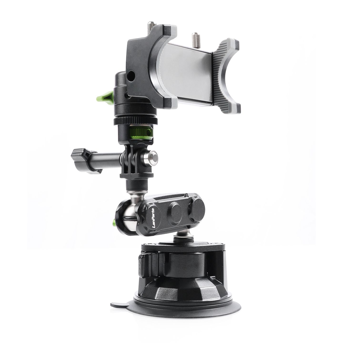 The universal suction cup mount we produce provides a perfect solution for users looking for a mount suitable for both phones and action cameras. It features a 3.3-inch one-key lock suction cup base, a dual-ball head arm that offers universal adjustment, a GoPro mount conversion adapter, and a phone clamp.